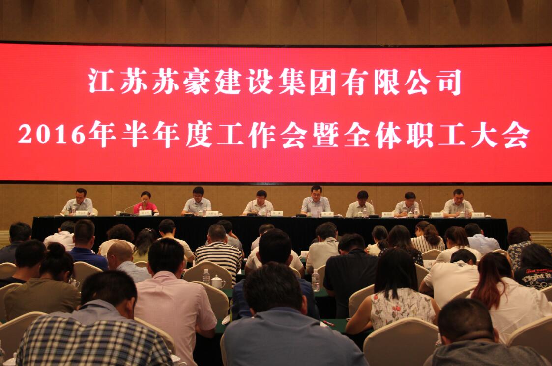 8月3日,建設(shè)集團召開2016年半年度工作會暨全體職工大會,總結(jié)上半年工作,部署下半年目標任務,并表決通過《江蘇蘇豪建設(shè)集團有限公司員工違規(guī)處分規(guī)定(試行)》。建設(shè)集團領(lǐng)導班子、集團本部及子公司全體員工參加會議??毓杉瘓F副總裁、建設(shè)集團黨委書記周謙出席會議并講話。孫新山總經(jīng)理主持會議,并傳達控股集團上半年經(jīng)濟工作會議精神。